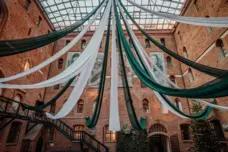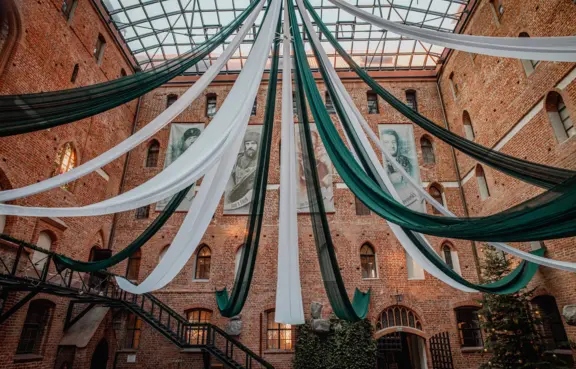 Dziedziniec – Sala Królewska – imponująca przestrzeń eventowa o powierzchni 450 m², przeszklona i dostępna przez cały rok. Idealna na konferencje, gale i wydarzenia dla nawet 400 osób. Usytuowanie na poziomie zero daje możliwości dla organizacji wydarzeń z udziałem samochodów.