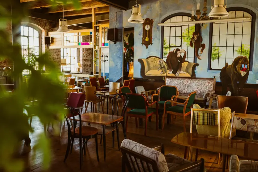 Nasze miejsce to 220 m kw. nietuzinkowego wystroju. Loftowe wnętrze z wysokim drewnianym sufitem i pięknymi przemysłowymi oknami łączy się z autorskimi muralami od polskich artystów, wyszukanymi vintage meblami i majestatycznym barem.