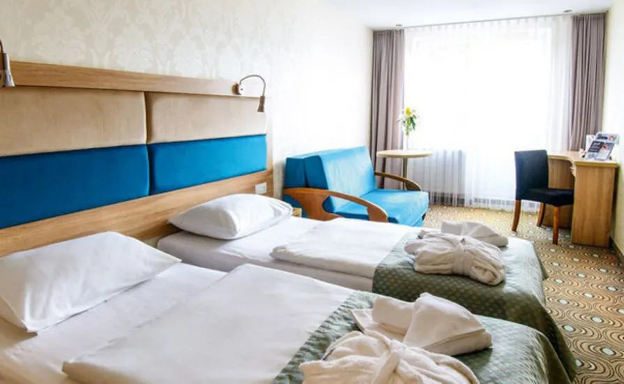 Pokoje: obiekt oferuje pokoje 2-, 3- i 4-osobowe, Standard oraz Standard Plus - rozmieszczone w części Standard oraz nowej części Apart oraz 8 całorocznych domków Lux z klimatyzacją i aneksem kuchennym.