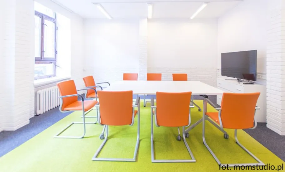 Sale konferencyjne: Sala szkoleniowa o powierzchni 27.5 mkw, mieszcząca do 10 osób. Wyposażona jest w ekran, projektor oraz TV.
