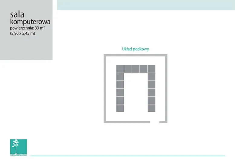 Sale konferencyjne: 6 sal szkoleniowych, sala komputerowa i aula.