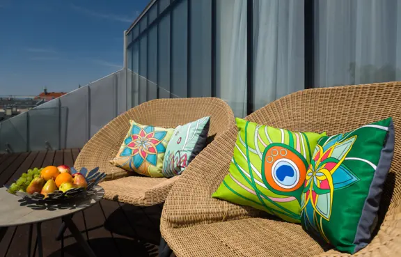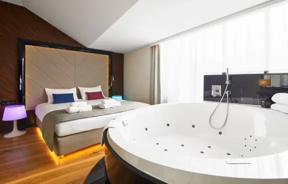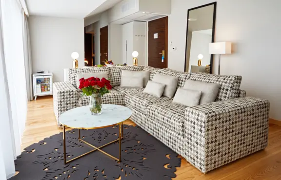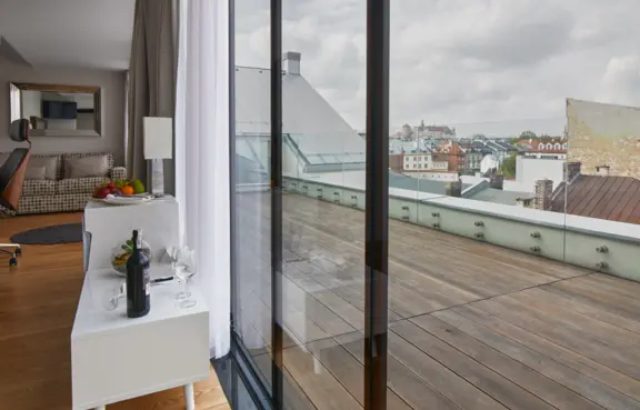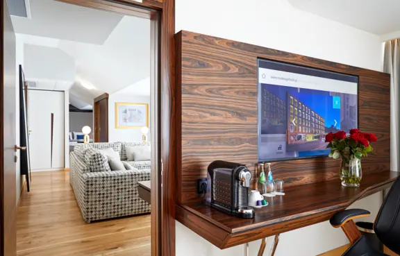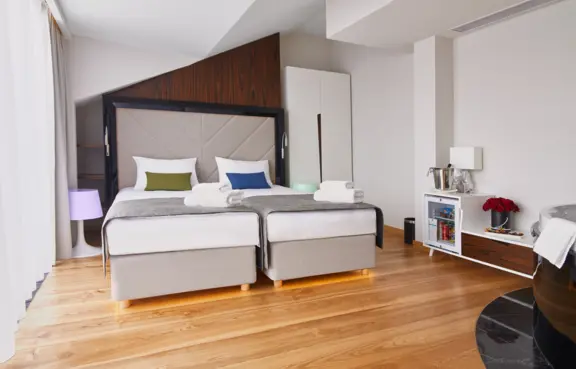 W Hotelu znajduje się 118 oryginalnie urządzonych pokoi jedno i dwuosobowych oraz 4 eleganckie apartamenty z tarasami. Jasne wnętrza, "lewitujące", podświetlane łóżka, przyjemne w dotyku tkaniny oraz subtelne oświetlenie sprawią, że będziesz mógł w pełni cieszyć się wypoczynkiem w otoczeniu sztuki. Wystrój pokoi inspirowany stylem Art Deco w połączeniu z bogatą kolorystyką typową dla dzieł malarki Zofii Stryjeńskiej zapewnią niezapomniane wrażenia estetyczne. O twoje bezpieczeństwo i zdrowie dbamy poprzez szereg procedur stworzonych na podstawie zaleceń WHO