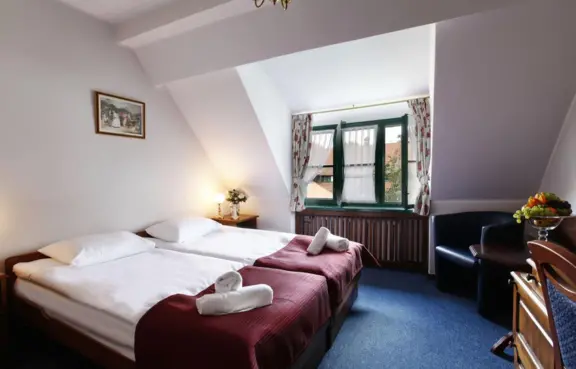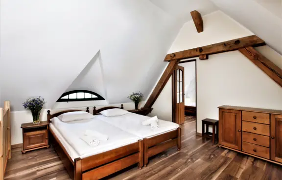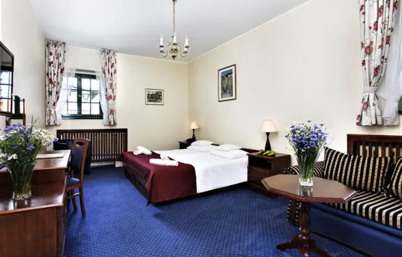 W obiekcie znajdują się 104 miejsca noclegowe w 42 stylowych pokojach. Pokoje 1, 2, 3 i 4 osobowe z łazienką z wanną lub prysznicem, ręcznikami. kosmetykami i suszarką.