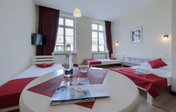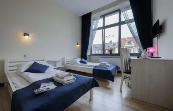 Architektura: pokoje gościnne zajmują trzy odrestaurowane kamienice z XIX wieku. Wnętrza obiektu utrzymane są w nowoczesnym stylu.