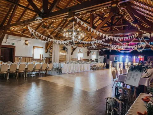 Sale konferencyjne: W karczmie wynająć można dwie sale, mieszczące 100 i 150 uczestników wydarzenia. Obiekt sprawdzi się na szkolenia, imprezy firmowe i okolicznościowe oraz bankiety.