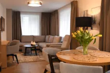 Apartamenty o powierzchni 32-52m2, jeden z kuchnią, jeden z aneksem kuchennym, jeden przystosowany dla osób niepełnosprawnych. W każdym apartamencie LED TV, Internet Wi-Fi, widok na jezioro.