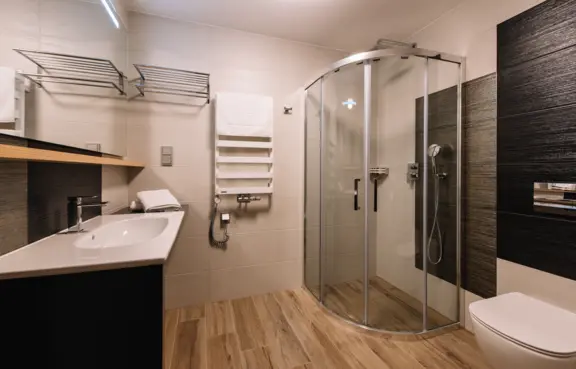 Wychodząc naprzeciw oczekiwaniom osób niepełnosprawnych, stworzyliśmy pokoje dostosowane do ich potrzeb. Uchwyty w łazienkach, większe kabiny prysznicowe, czy szersze drzwi to tylko kilka, z oferowanych modyfikacji. Nasze pokoje posiadają udogodnienia również dla osób niewidomych i niedowidzących jak np.: komendy głosowe. Cały obiekt dostosowany jest tak, aby osoba poruszająca się na wózku inwalidzkim mogła swobodnie przemieszczać się po nim i dotrzeć samodzielnie w każde jego miejsce.