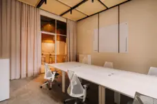 Sala konferencyjna: Oferowana sala konferencyjna ma powierzchnię 54 m kw., która w ustawieniu teatralnym pomieści 50 osób. Stanowi komplementarną część usług coworku dla członków LABO.