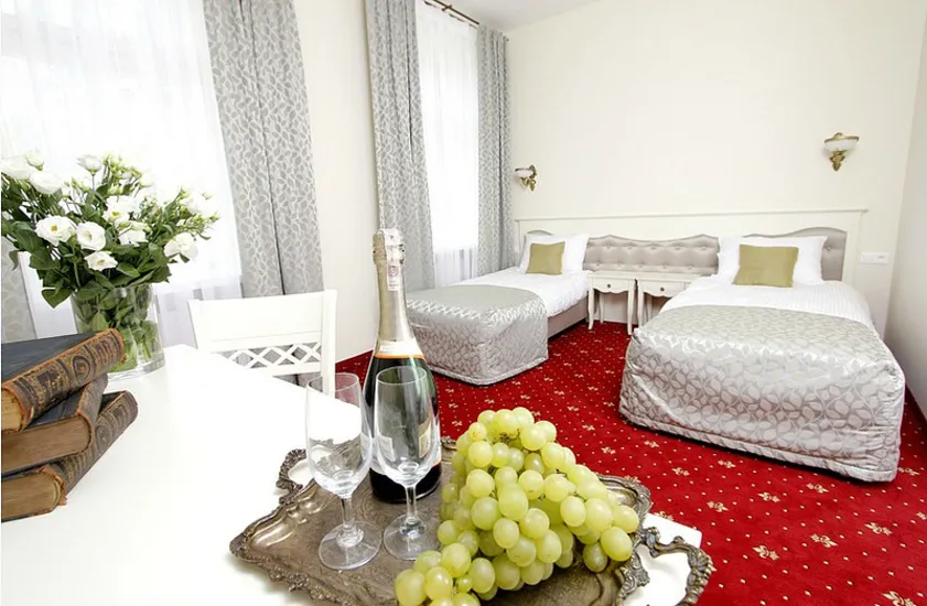 Pokoje: 15 miejsc noclegowych w pokojach i apartamentach.