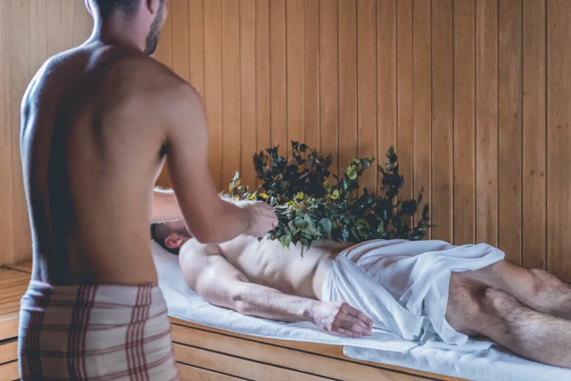 Jako jedyni w okolicy mamy prawdziwą Ruską Banię, czyli domek baniowy na wynajem. To część z sauną i strefą wypoczynkową z tężnią solną. Organizujemy także wieczory z Saunamistrzem - opiekunem w Ruskiej Bani, który przeprowadza gości przez wszystkie seanse, których częścią jest między innymi masaż ciała witkami brzozowymi, czy jesienią/zimą - schłodzenie organizmu w biostawie.