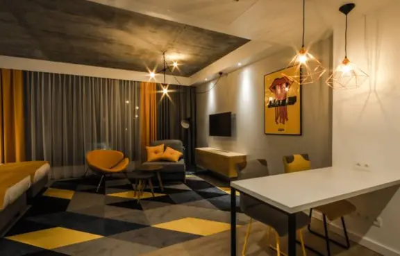 Pokoje: Hotel oddaje do dyspozycji 274 miejsca noclegowe w 137 pokojach, apartamentach oraz pokojach typu studio, o powierzchni od 26 do 90 mkw. Docelowo dostępnych ma być 167 pokoi i apartamentów dla 334 osób.