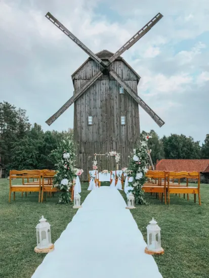 Architektura: rozciągający się na 7 hektarach kompleks składa się z kilkunastu obiektów utrzymanych w stylu dworkowym i rustykalnym. Znajdziemy tu m.in. drewniane chaty, zabytkowy wiatrak czy nowo utworzony Dom Gościnny Sielanka.