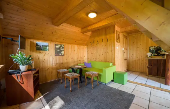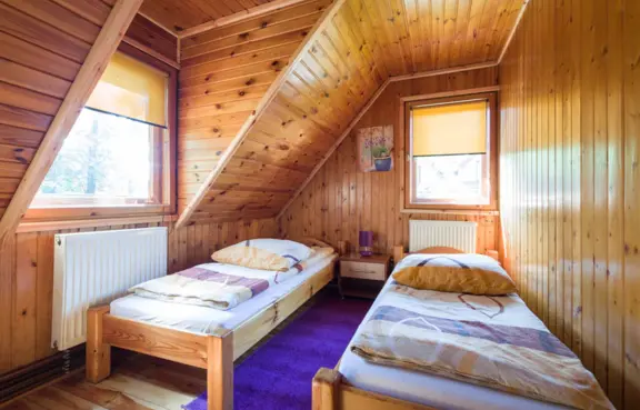 Noclegi: 60 miejsc noclegowych na poziomie 3 i 4 gwiazdek w pokojach hotelowych oraz domki góralskie.