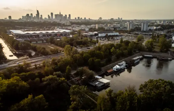 Niepowtarzalny lokal zbudowany z kontenerów morskich, unoszący się na wodzie w samym sercu Portu Czerniakowskiego w centrum Warszawy