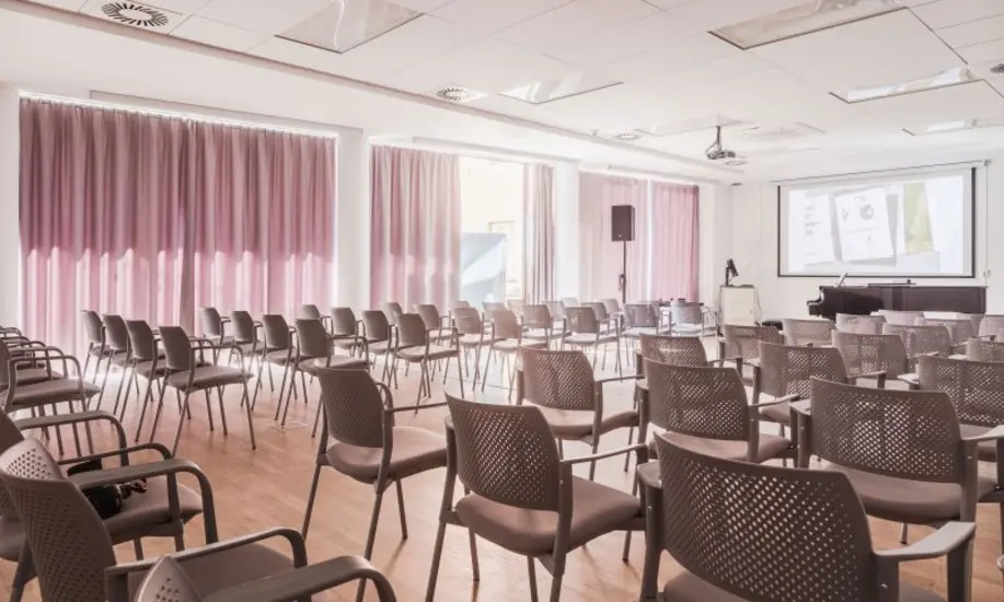 Sale konferencyjne: Sala konferencyjna /dla 100 osób/, Sala Czytelnia /dla 40 osób/, hol cateringowy, dziedziniec mieszczący do 300 osób oraz taras z widokiem na sąsiedujący obok Bazar Różyckiego /dla 30 osób/.