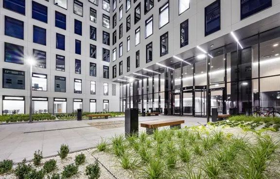 Jest to kompleks biurowy, na terenie którego znajduje się New Work, to 3-piętrowy budynek z lat 30. XX wieku, pomnik polskiego modernizmu, oraz dwa budynki liczące 9 i 13 kondygnacji, które górują nad zabytkowym budynkiem.
