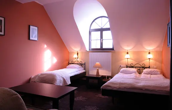 Pokoje: 137 miejsc noclegowych w 38 pokojach.