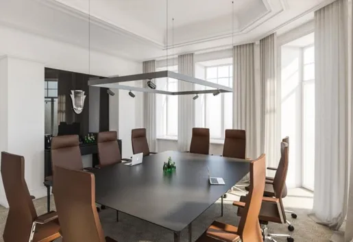 Stylowa sala konferencyjna z widokiem na ulicę Wilczą, z delikatnym akcentem w stylu Art Deco i współczesnymi wpływami
