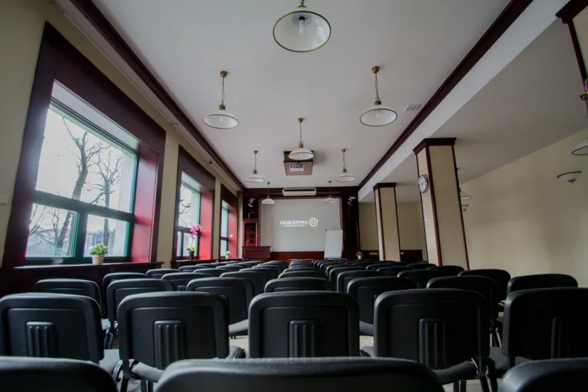 Sala Grand to największa sala dostępna na Ogrodowej 12. Jest ona konferencyjną wizytówką całego obiektu. W układzie teatralnym jest w stanie pomieścić ponad 90 gości. Jest to idealne miejsce na duże konferencje lub szkolenia.