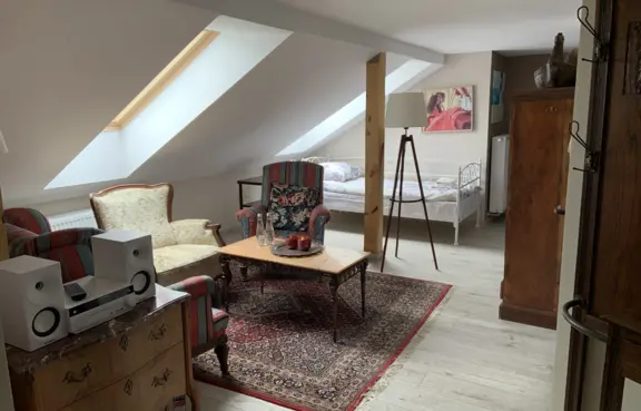 Pokoje: 17 miejsc noclegowych w 8 pokojach i apartamentach.