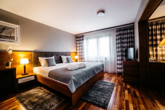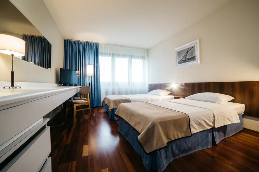 W hotelu znajduje się około 200 miejsc noclegowych rozmieszczonych w 96 pokojach wyposażonych w TV, Internet, biurko, telefon.