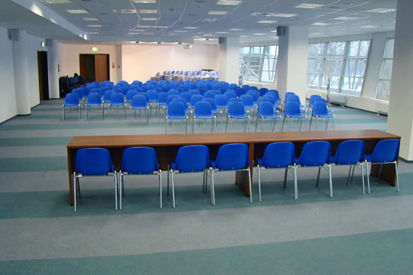 Duża sala konferencyjna mogąca pomieścić około 300 osób. W pełni wyposażona w profesjonalny sprzęt oświetleniowy, nagłośnieniowy i multimedialny. Sala posiada również mozliwość zorganizowanie cateringu