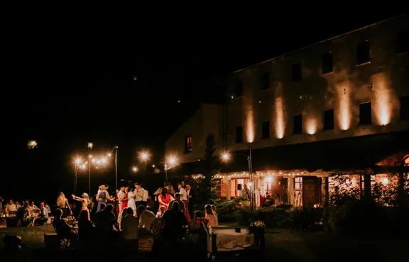 Poza salą bankietową w drewnianej Stodole, połączoną z Sieciarnią, Osada Młyńska oferuje duży brukowany dziedziniec o powierzchni 3000 m kw. na eventy na świeżym powietrzu.