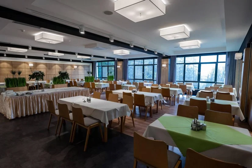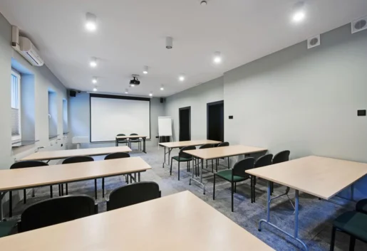 Sale konferencyjne: Obiekt dysponuje 2 salami konferencyjnymi. Większa pomieści 90 osób w ustawieniu teatralnym, mniejsza zaś do 40 osób w tym samym układzie. Obie sale mają dostęp do światła dziennego i wyposażenie konferencyjne.