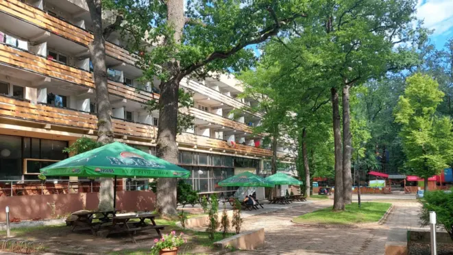 Dodatkowe usługi i atrakcje: Obiekt posiada rozległy teren zielony, który umożliwia organizację imprez plenerowych, takich jak grille, ogniska czy pikniki. Dla gości dostępne są również kuchnie i pralki na każdym piętrze oraz całodobowa recepcja ze sklepikiem. Obiekt jest monitorowany.