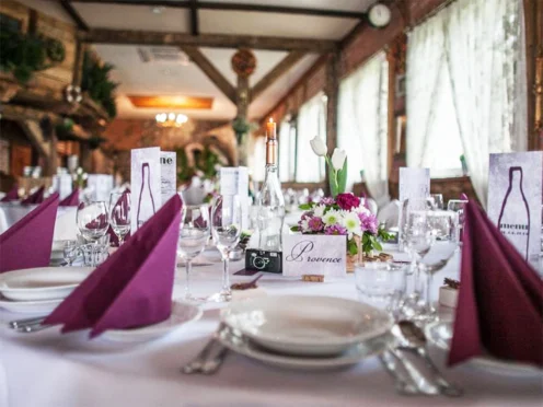 Sale konferencyjne: na spotkania biznesowe, szkolenia i przyjęcia przeznaczone są: Sala Kolumnowa na kameralne spotkania dla 20 osób, sala restauracyjna dla 60 gości oraz Sala Bankietowa (z tarasem) dla maksymalnie 100 osób.