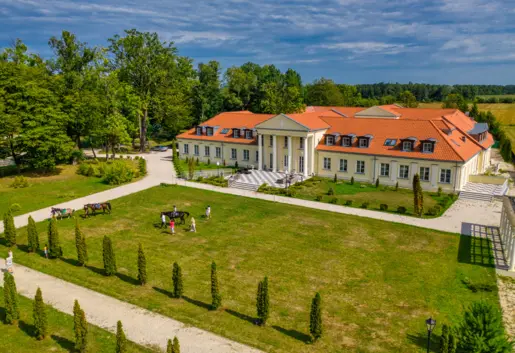 Architektura: Pałacowe wnętrza w stylu barokowym. Hotel działa od 2016 roku.