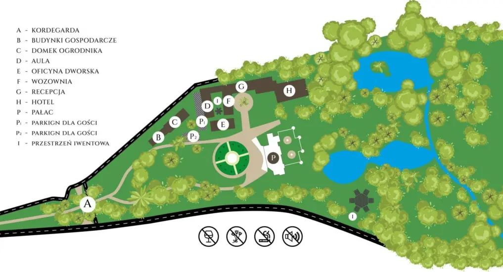Zapewniamy również komfortowy nocleg dla 180 gości w pokojach zespołu pałacowego oraz w stylowych apartamentach w samym Pałacu. Na terenie obiektu dostępne są także miejsca parkingowe dla przyjezdnych gości.