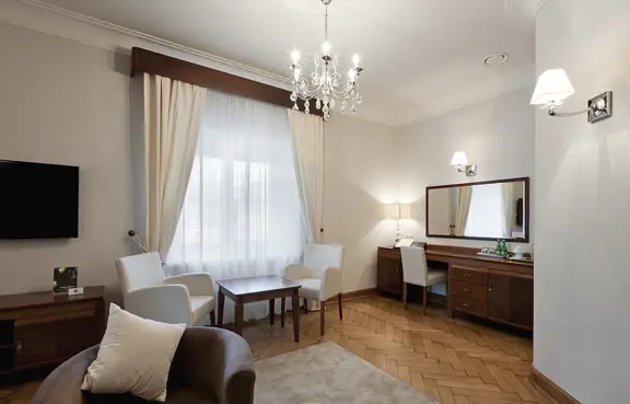 Pokoje: Palac Cieleśnica oddaje do dyspozycji gości 10 pokoi, w tym dwa apartamenty.