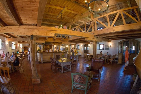 Dwupoziomowa Gospoda, z górującą nad nią wieżą zegarową, mieści się w zabytkowym spichlerzu, głównym budynku Folwarku. Znakomicie nadaje się na imprezy okolicznościowe (bankiety, gale wieczorne zarówno w formie zasiadanej jak i buf
