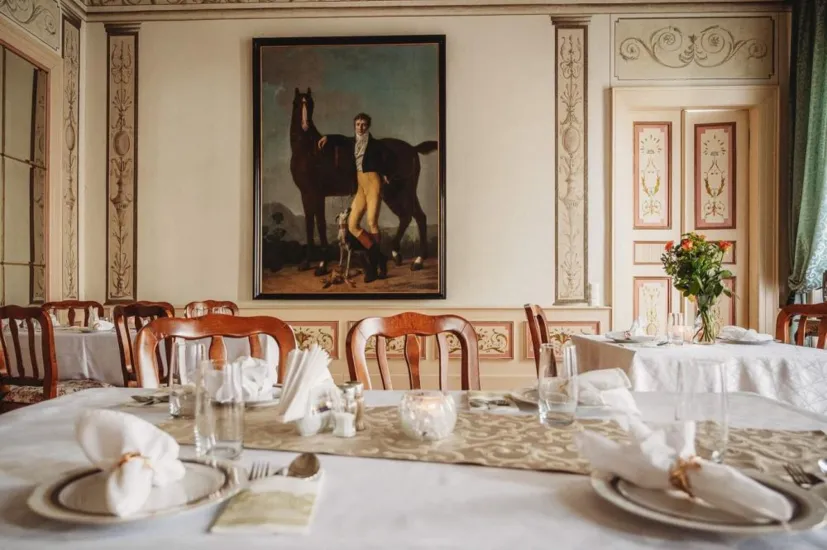 Pokoje: w pałacu oraz Starej Wozowni rozlokowanych jest 21 pokoi i 9 stylowych apartamentów. Obiekt łącznie oferuje 60 miejsc noclegowych.