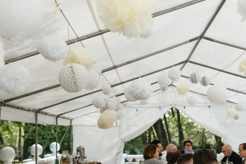Oferujemy możliwość organizacji plenerowych eventów pod namiotem angielskim z dedykowaną toaletą. Dodatkowo, dostępny jest taras wschodni oraz Biblioteka w Pałacu, stanowiące doskonałe, zaciszne przestrzenie na mniejsze spotkania czy zgromadzenia.