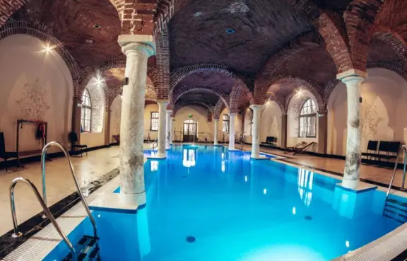 Dodatkowe atrakcje i usługi: Goście pałacu mogą korzystać z atrakcji, takich jak: basen, sauna, jacuzzi, spa, sala bilardowa, kręgielnia, kort tenisowy czy plac zabaw dla dzieci.