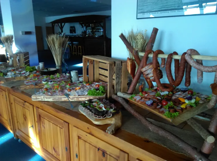Gastronomia: Restauracja Panorama z tarasem pomieści na jednej kondygnacji 150 osób z tarasem nad jeziorem, Grill Bar Port Wierzba z piecem opalanym drewnem i miejscem na ogniska, catering plenerowy.