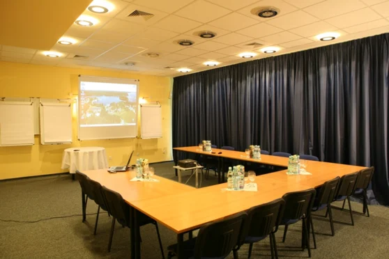 Mała Sala konferencyja w pełni komfortowo wyposażona zapewnia doskonałe warunki do obsługi szkoleń dla grup do 45 osób.