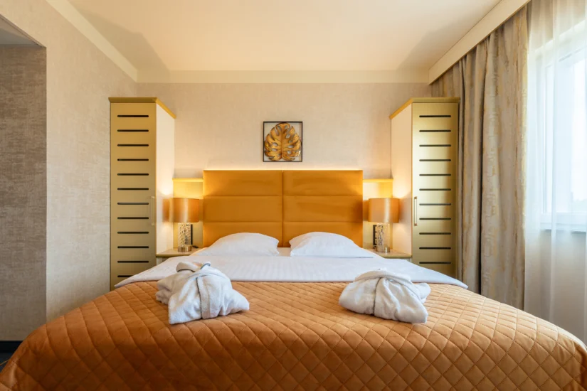 Pokoje: 186 pokoi duwosobowych i apartamentów.