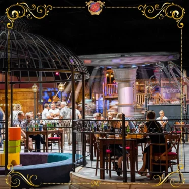 Architektura: Mandoria to duży, zadaszony kompleks oferujący liczne atrakcje, które mogą urozmaicić firmowy event. Wnętrza Mandorii przypominają XVI-wieczne miasto handlowe.