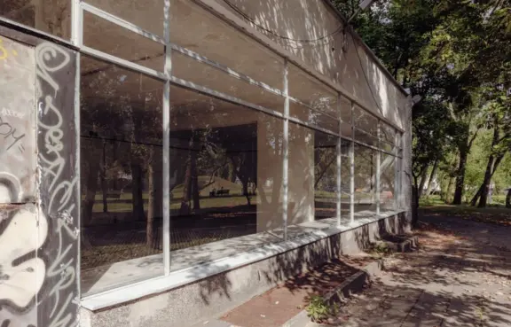 Architektura: pawilon wybudowany został w 1969 r. Przez lata działał tu sklep, następnie obiekt wykorzystywany był w celach magazynowych i biurowych. W 2023 r. został gruntownie wyremontowany, z zachowaniem historycznej tkanki budynku.