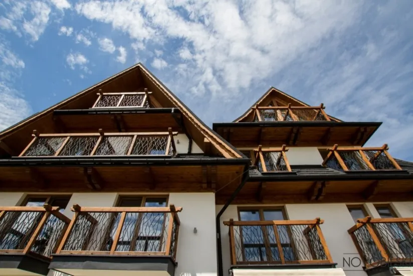Budynek z elementami architektury podhalańskiej, z zastosowanymi pro-ekologicznymi rozwiązaniami, korzystający wyłącznie z odnawialnych źródeł energii.