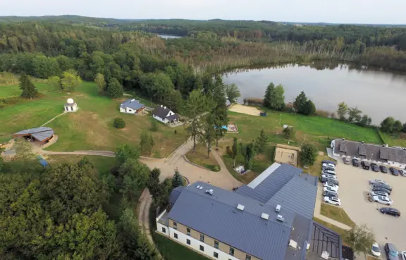 Hotelt mieści się pośrodku lasu, nad jeziorem, na terenie Puszczy Drawskiej.