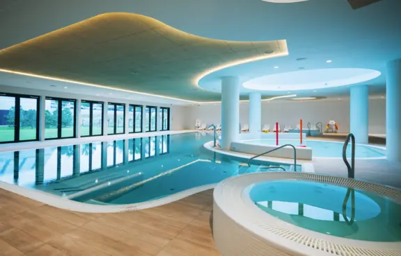 Gastronomia: Na terenie resortu znajduje się elegancka restauracja z przestronnym tarasem zewnętrznym oraz klimatyczny bar – idealne miejsca na spotkania biznesowe i towarzyskie.