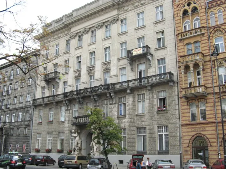 Architektura: Kamienica z XIX w. w stylu wczesnomodernistycznym, nazwę zawdzięcza gigantom na flankach wejścia.
