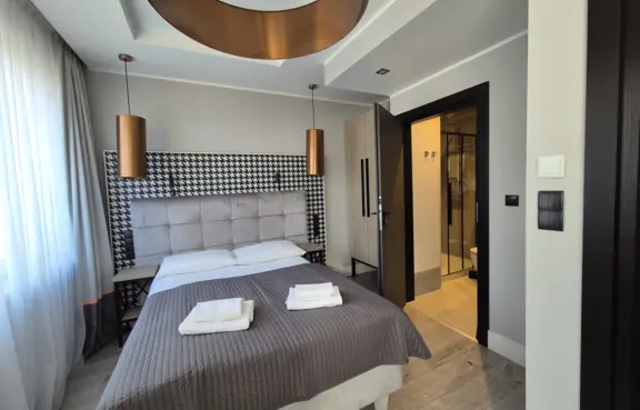 Dodatkowe usługi i atrakcje: parking, taras o powierzchni 160 m kw. i ogród o powierzchni 300 m kw., prywatna plaża z łóżkami plażowymi dla gości.