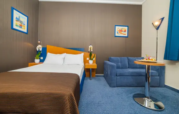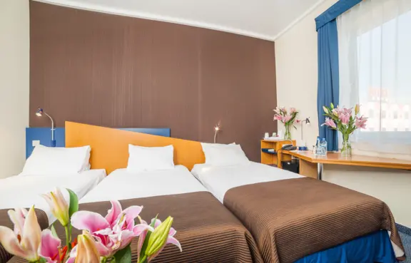 Hotel oddaje do dyspozycji Gości 179 nowoczesnych, klimatyzowanych pokoi; w tym 7 pokoi dla osób niepełnosprawnych Oferujemy również pokoje typu twin (z dwoma pojedynczymi łóżkami) i pokoje typu double (jedno duże małżeńskie łóżko) a także jeden 60-metrowy apartament.