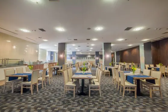 Do dyspozycji Gości oddajemy także 169 pokoi, hotelową restaurację Impresja, bar, a także strefę wellness wyposażoną w basen i saunę.