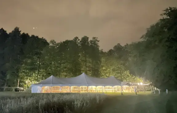 Sale konferencyjne: namiot o powierzchni 450 m2 pomieści do 200 uczestników eventu. Teren wokół jest efektownie oświetlony, wydzielono też miejsce na parking.